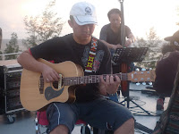 The next day, Roger and his friends went to the site early for soundcheck. But when it's by the sea and it's afternoon, the heat can get pretty unbearable! (Good thing Sara and I stayed back and enjoyed the pool instead :) .... )